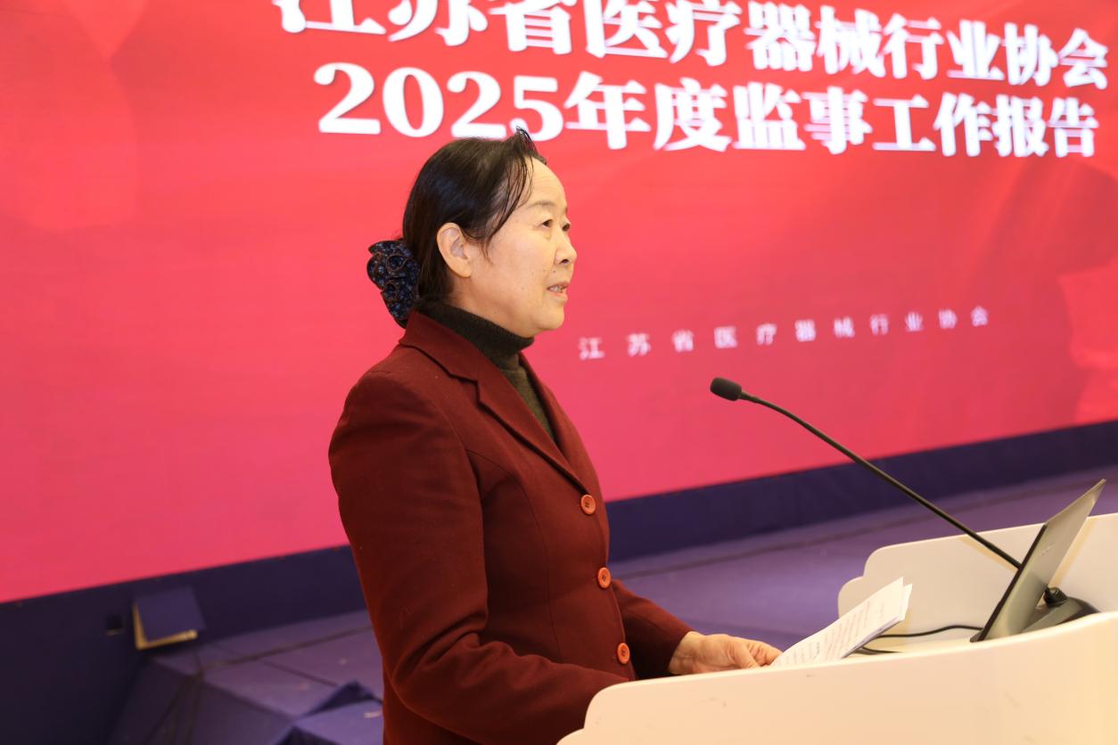 江苏省医疗器械行业协会副会长单位、无锡宇寿医疗器械有限公司总经理缪李平做2025年度工作报告。报告回顾了协会在过去一段时间的工作亮点,包括协会自身建设、服务会员单位、推动行业创新发展、提升医疗器械产业高质量发展水平等方面。2026年协会将继续致力于振兴我省民族医疗器械产业发展,紧贴临床及家庭医疗需求,强化医疗器械企业自身质量管理、加强行业自律、联合培训联合创新,共同推进我省医疗器械行业高质量发展。